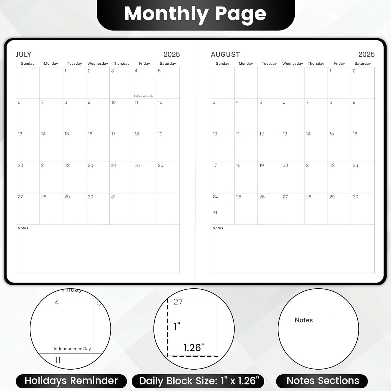 This premium academic diary is the perfect companion for students and educators throughout the 2025-26 academic year. Featuring a durable hardback cover with elegant design, this A5 planner offers weekly layouts from August 2025 to July 2026. Each week displays clearly on two pages with ample space for appointments, deadlines, and notes. Includes monthly overview pages, term dates, and lined note sections at the back. The integrated ribbon bookmark ensures you never lose your place, while the quality paper prevents ink bleed-through. Ideal for university students, college pupils, teachers, and academic professionals who need reliable organization tools.