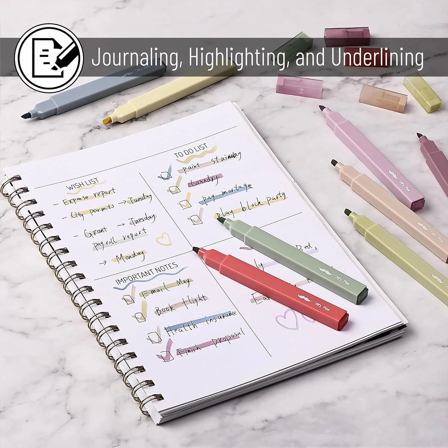 Our highlighters are comfortable and easy to hold without a sore hand & don't roll around while using; The versatile chisel tip efficiently produces wide and narrow lines These cute highlighters are suitable for school, college, home, office, even travel diary, schedule, work, study, notes, etc; They are also wonderful gifts for family and friends The highlighters feature durable, quick-drying ink to prevent smears and smudges; The ink is also resistant to fading so your work stays clean and clear for longer Mr; Pen highlighters are perfect for highlighting your scriptures, notes, journals, or any books you want to read with bright and vibrant colors