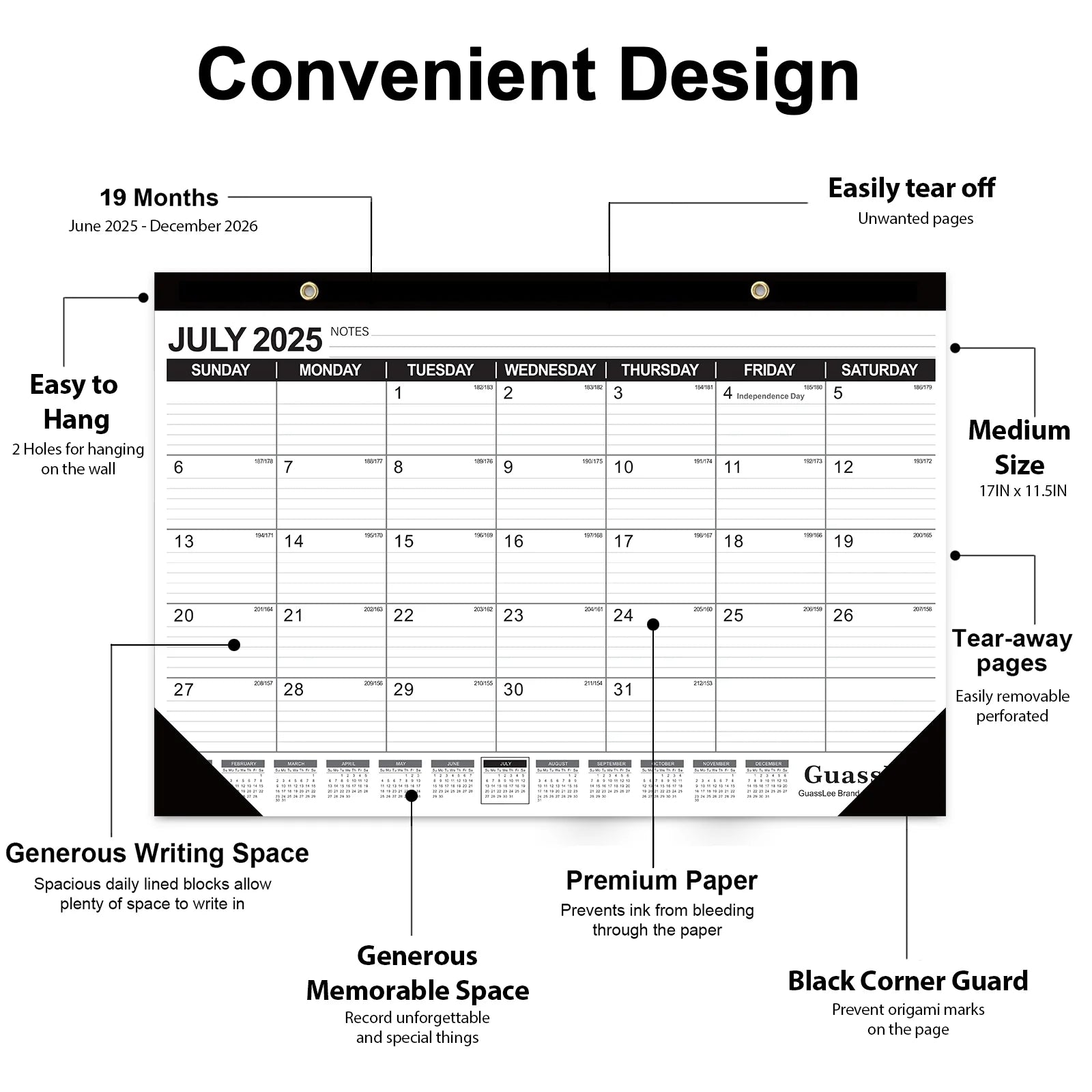 19-Month Planning: The 3 Pack Desk Calendars offer a long-term planning solution, running from June 2025 through December 2026. With a spacious 17" × 11.5" size, this large desk calendar is perfect for organizing academic, personal, or professional schedules, making it an essential tool for home, school, and office desk top organizing.